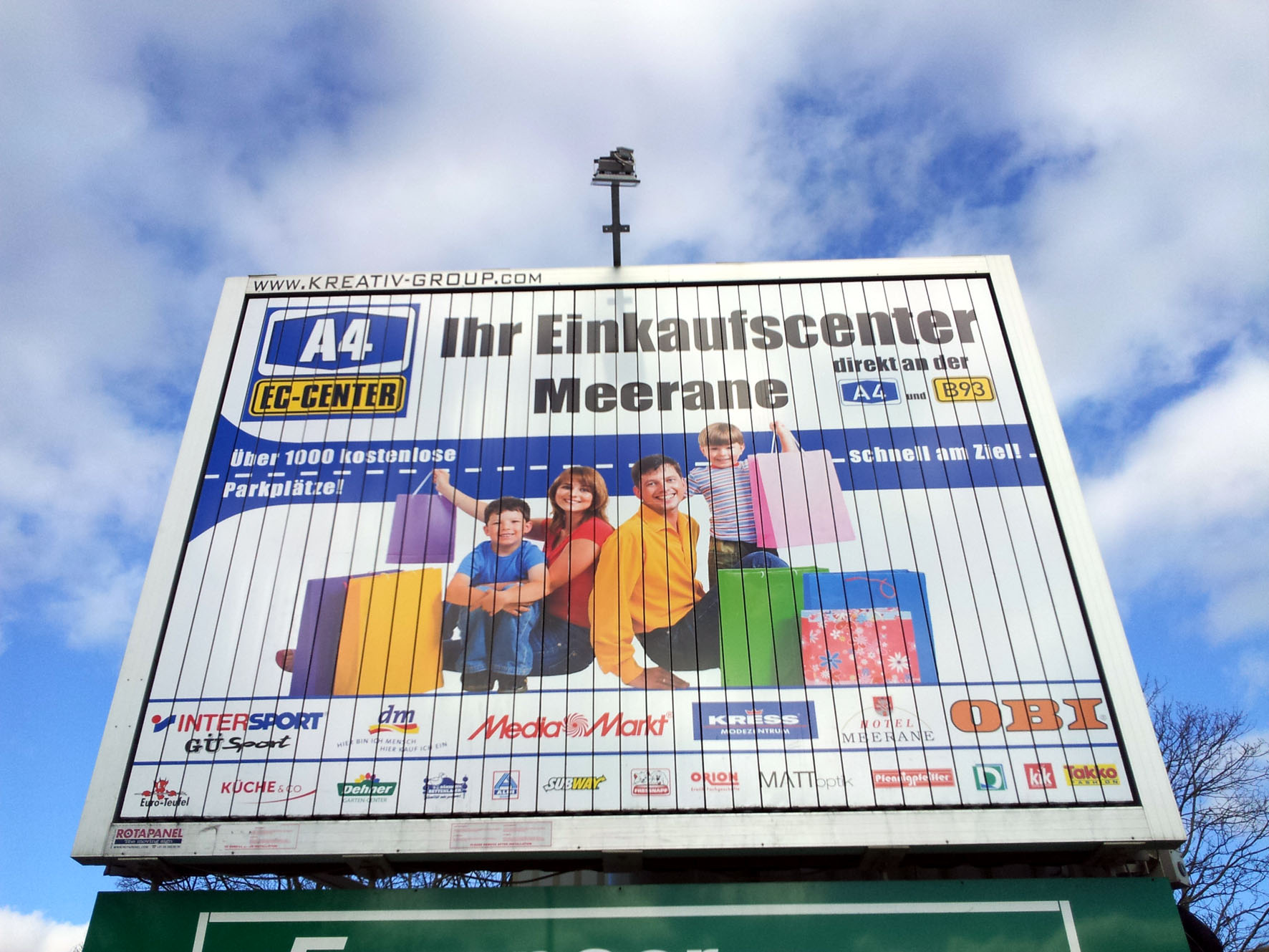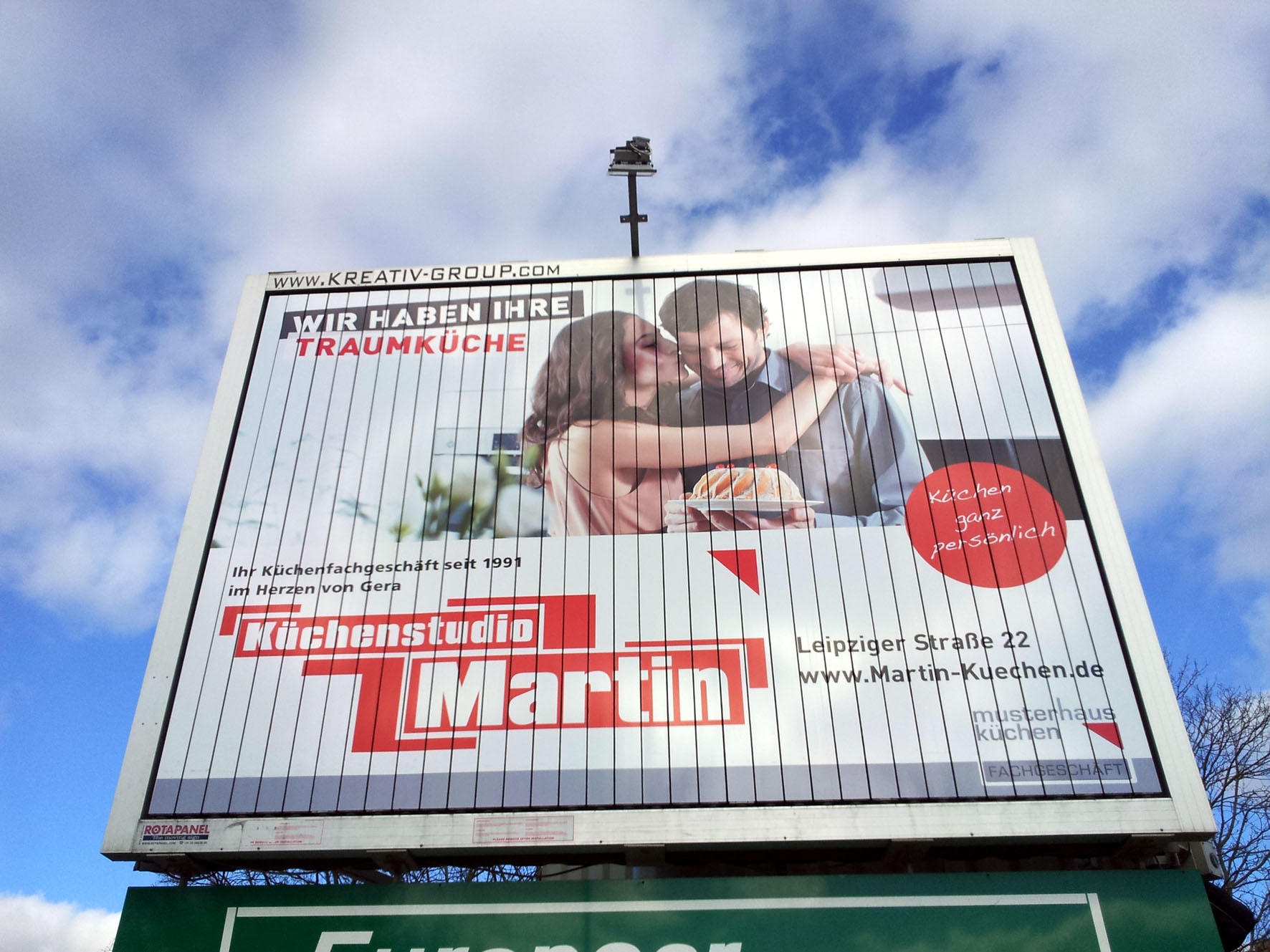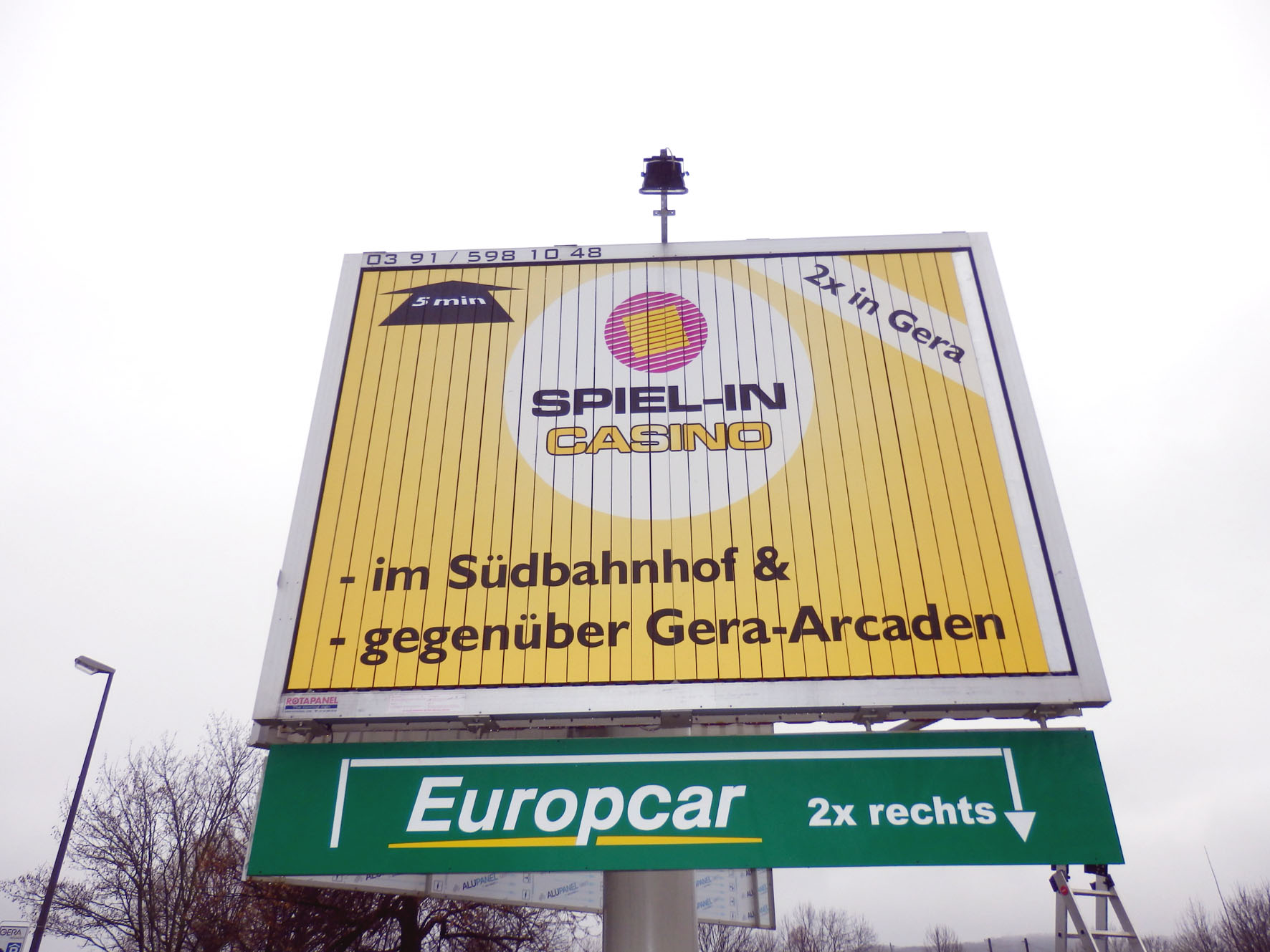 (Zur Galerieansicht Bild anklicken) | | | Standort: | | direkt in der City von Gera Theaterstrasse Kreuzung Berliner Strasse - zwischen den beiden Ampelanlagen Berliner-Strasse und Gaswerkstrasse - 3 Meter neben der B2 - zwischen Feuerwehr und Subway gegenüber der AOK in Richtung Süden | | Abmessungen: | | 4,00 x 3,00 Meter | | Kontaktchancen: | | ca. 70.000 täglich | | Besonderheiten: | | Anlage mit Beleuchtung! | | Kartenansicht: | | |